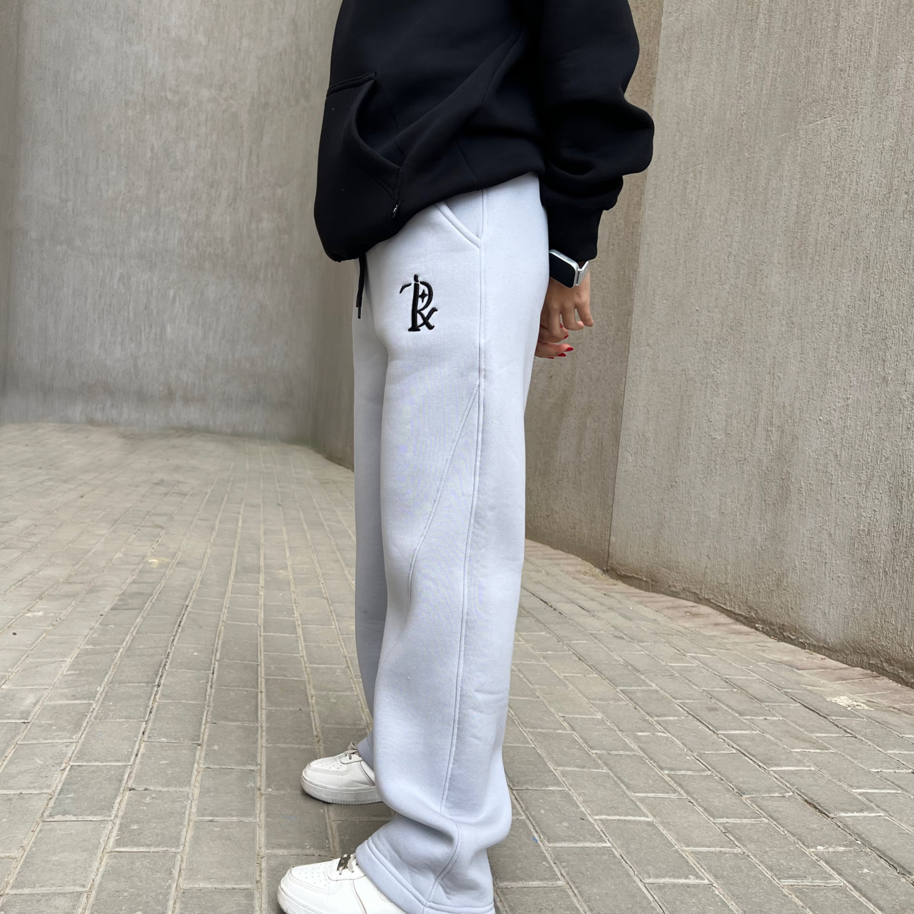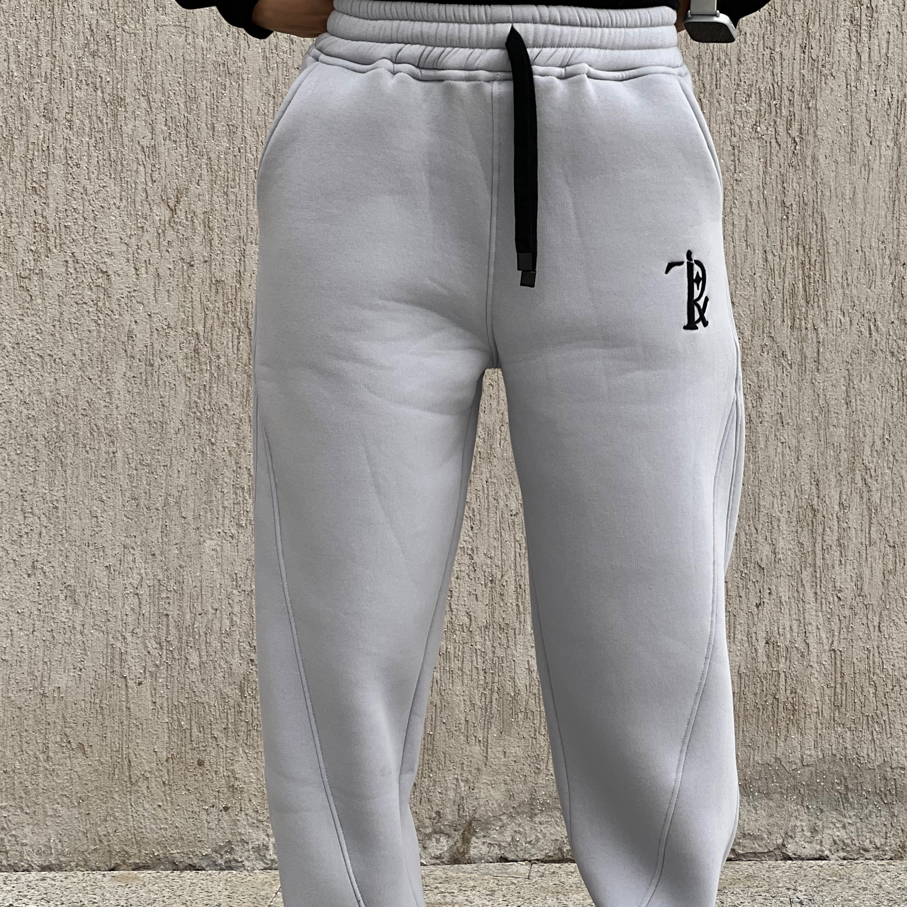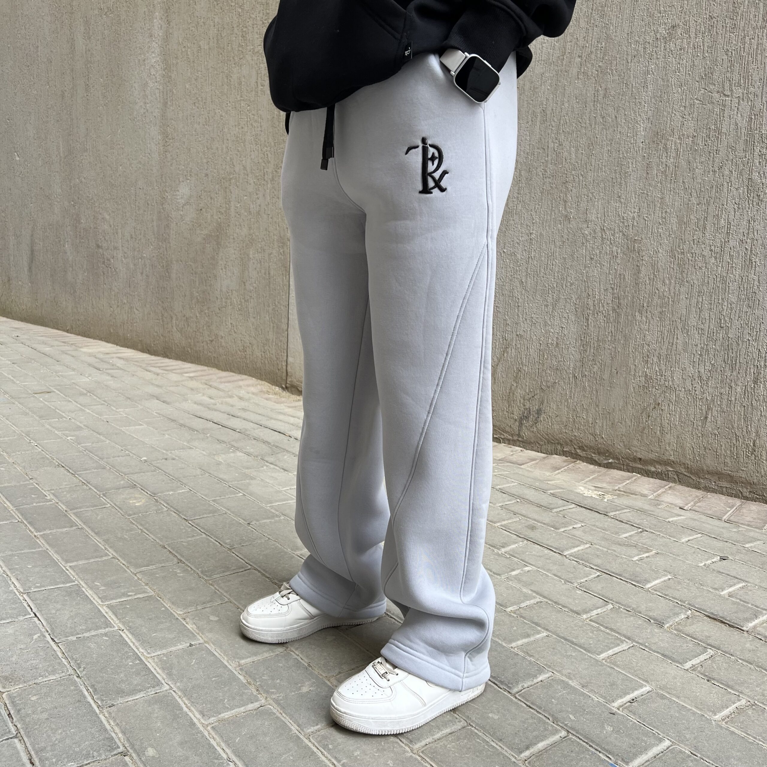 Trio-x Grey Wide Leg Sweat Pants Embroidered.